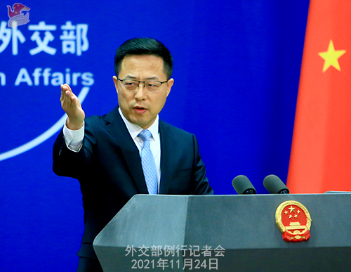 人民網(wǎng)北京11月24日電 據(jù)外交部網(wǎng)站消息,外交部發(fā)言人趙立堅(jiān)主持今日例行記者會。記者會實(shí)錄如下: