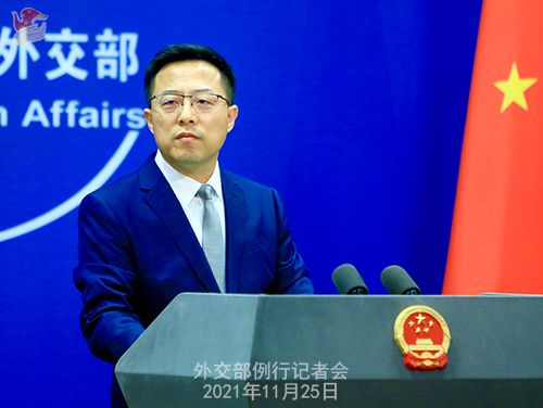 人民網(wǎng)北京11月25日電 據(jù)外交部網(wǎng)站消息,外交部發(fā)言人趙立堅(jiān)主持今日例行記者會(huì)。記者會(huì)實(shí)錄如下: