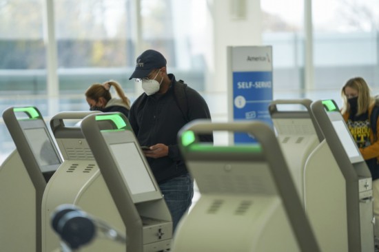 11月24日,乘客在美國紐約拉瓜迪亞機場辦理乘機手續(xù)。新華社記者 王迎 攝