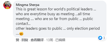 9月23日秋分日,我國迎來了第四個中國農(nóng)民豐收節(jié)。人民網(wǎng)英文版在“看見中國”臉書賬號發(fā)布短視頻,帶領(lǐng)海外讀者跟隨習(xí)近平主席,了解推進鄉(xiāng)村振興戰(zhàn)略和中國農(nóng)村發(fā)展情況。海外網(wǎng)友紛紛留言,點贊中國的鄉(xiāng)村發(fā)展成就。網(wǎng)友@Mingma Sherpa評論:“這對世界其他國家領(lǐng)導(dǎo)人是很好的示范,他們平時總是忙著開會,遠離群眾,只有在選舉時才會貼近群眾!本W(wǎng)友@William Chang評論:“一位杰出國家領(lǐng)導(dǎo)人的標志是關(guān)心人民的生活。中國人民很幸運能有這樣一位領(lǐng)導(dǎo)人!