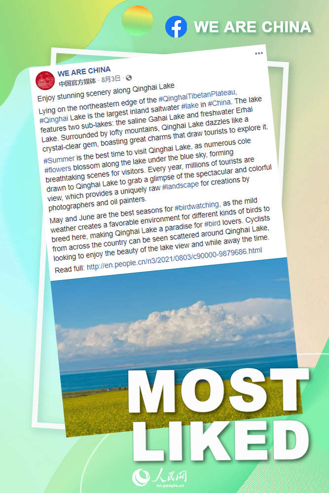 人民網(wǎng)英文版在“看見中國”臉書賬號發(fā)布夏季時分的青海湖景色組圖,向海外網(wǎng)友展現(xiàn)了中國的生態(tài)之美。該貼文獲得了3.5萬網(wǎng)友點贊,網(wǎng)友@Apró Zoltán Bill評論說:“去過青海湖很多次了,毫無疑問青海湖是必須打卡的旅游地點之一!