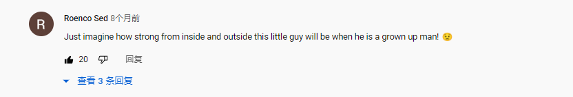 網(wǎng)友Roenco Sed留言:想象一下吧,這個小朋友長大后無論是內(nèi)心還是外表將會是多么強健。