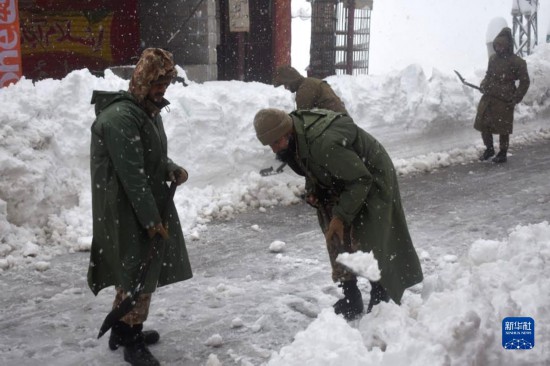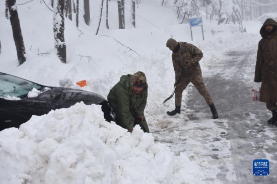 1月8日,士兵在巴基斯坦北部度假勝地穆里山區(qū)的雪災現(xiàn)場開展救援。新華社發(fā)