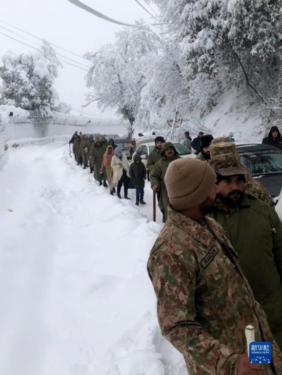 這是1月8日拍攝的巴基斯坦北部度假勝地穆里山區(qū)的雪災現(xiàn)場。新華社發(fā)
