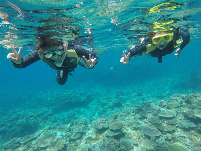 如寶石般色彩繽紛的魚類在美麗的珊瑚礁四周暢游,沖繩的海洋是日本潛水的絕佳選擇。沖繩附近全部海域皆有潛水點,運氣好的話,有可能在石垣島上看到魔鬼魚,在那霸島上看到錘頭鯊,這是很多潛水愛好者夢寐以求的際遇。