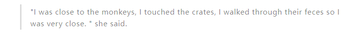 “我離猴子很近,我摸過箱子,還從它們的糞便上走過......”