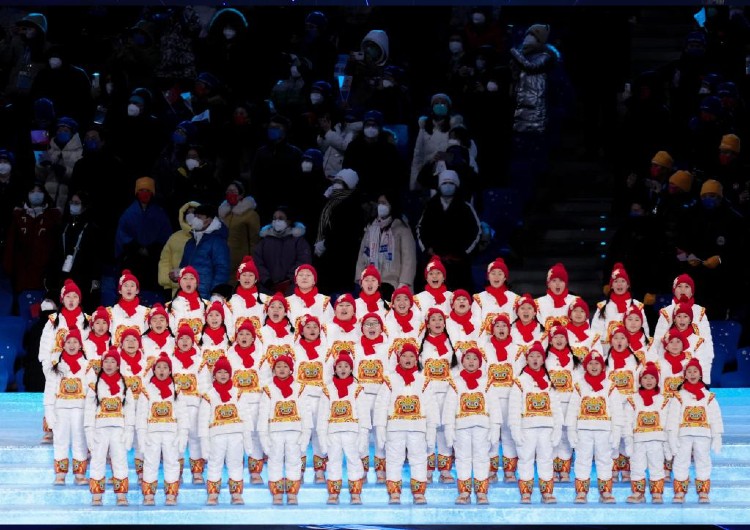 2月4日晚,第二十四屆冬季奧林匹克運(yùn)動(dòng)會(huì)開(kāi)幕式在北京國(guó)家體育場(chǎng)舉行。圖為孩子們演唱奧林匹克會(huì)歌。新華社記者李安攝