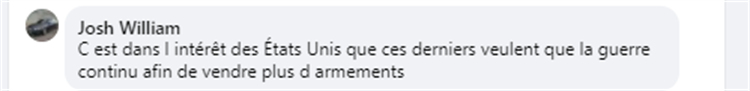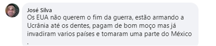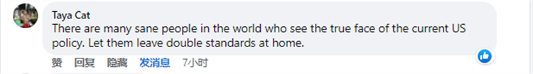 海外網(wǎng)友在人民網(wǎng)葡文社交媒體賬號(hào)留言評(píng)論:“美國(guó)不想結(jié)束這場(chǎng)戰(zhàn)爭(zhēng),他們已經(jīng)武裝到了牙齒,滿嘴謊言!