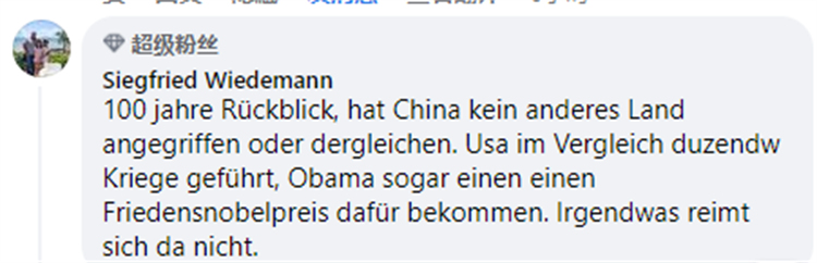 海外網(wǎng)友在人民網(wǎng)德文社交媒體賬號(hào)留言評(píng)論。圖片來(lái)源:網(wǎng)絡(luò)截圖
