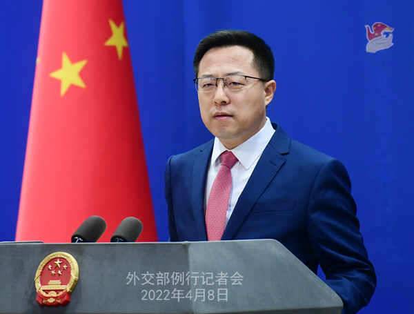 人民網(wǎng)北京4月8日電 據(jù)外交部網(wǎng)站消息,外交部發(fā)言人趙立堅(jiān)主持8日例行記者會。記者會實(shí)錄如下: