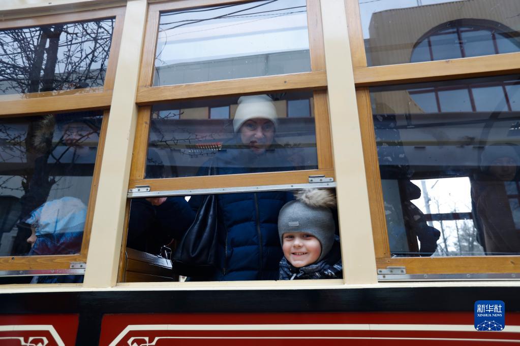4月16日,在俄羅斯首都莫斯科,人們乘坐活動上的有軌電車。