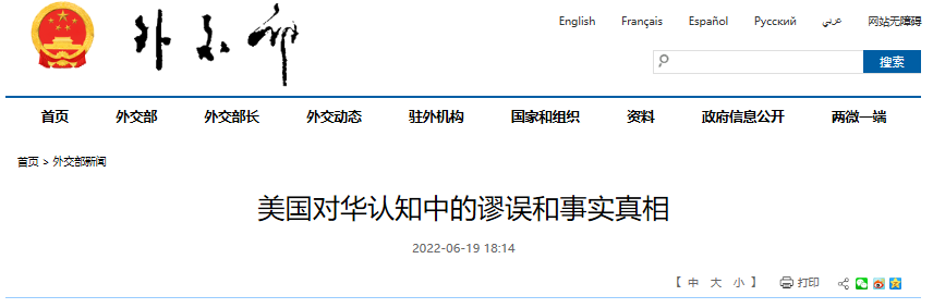 外交部發(fā)布:美國對華認(rèn)知中的謬誤和事實真相