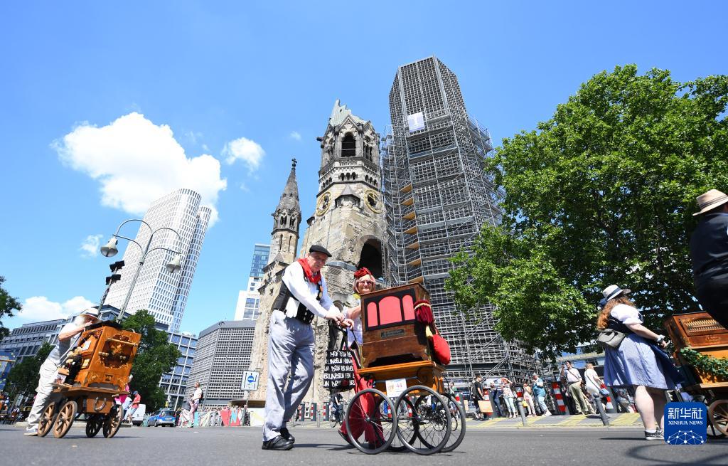 7月2日,手搖風(fēng)琴表演者在德國柏林參加藝術(shù)節(jié)巡游。