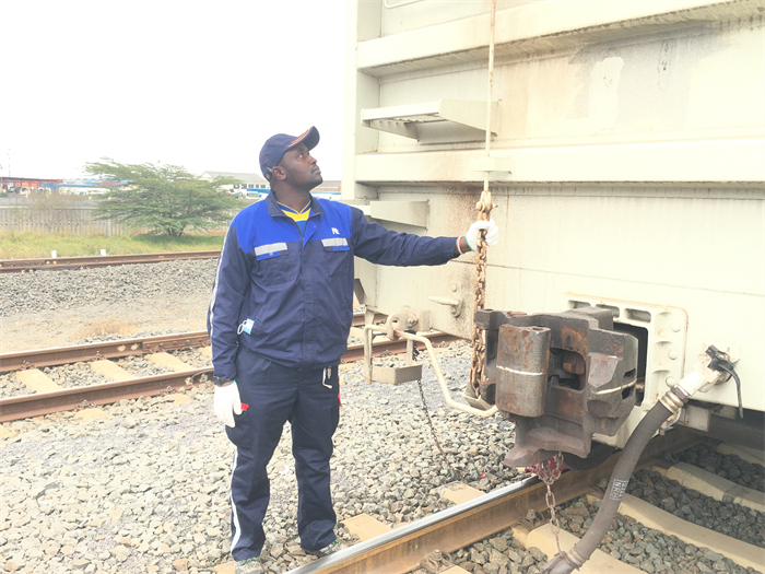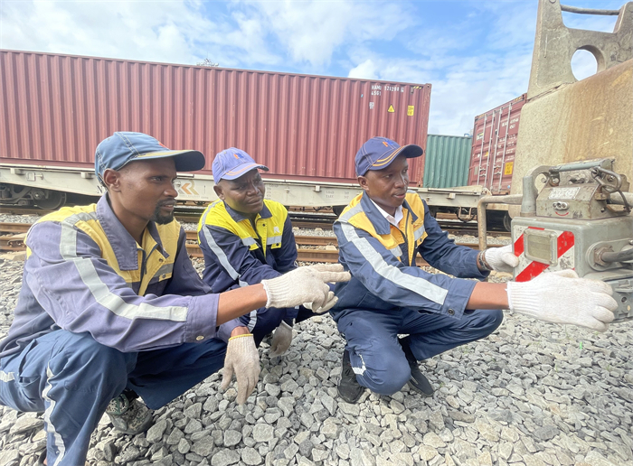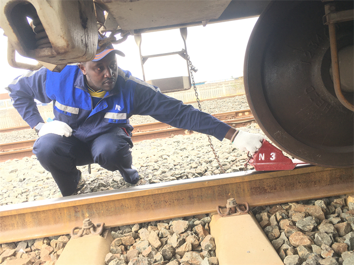 皮頓·恩霍洛日在檢查停留車輛防溜措施。非洲之星鐵路運營公司供圖