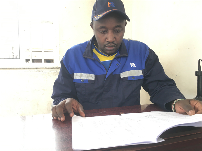 皮頓·恩霍洛日在檢查運轉(zhuǎn)車間班組臺賬內(nèi)業(yè)。非洲之星鐵路運營公司供圖