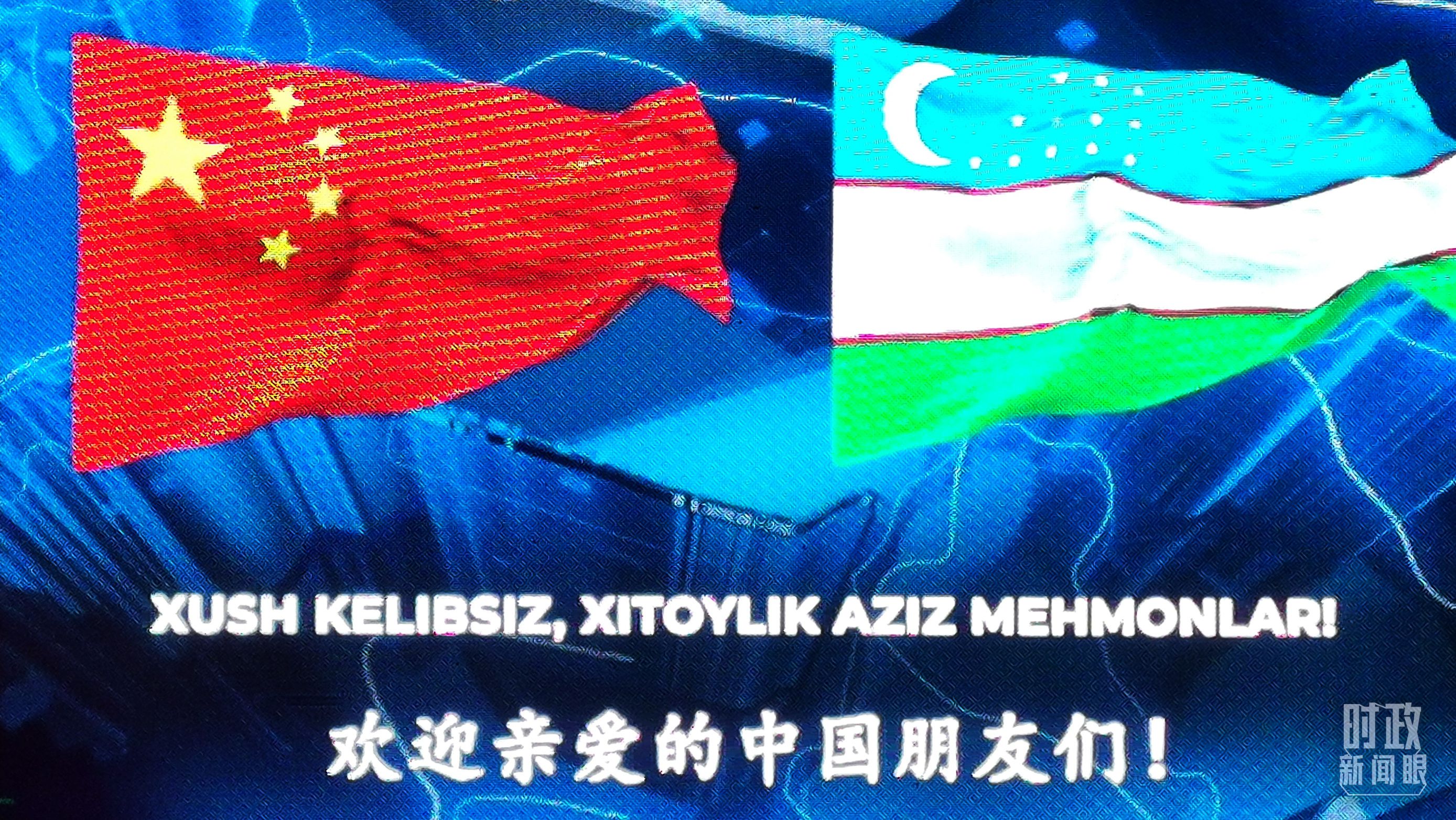 △在撒馬爾罕街道上,電子屏幕顯示中烏兩國(guó)國(guó)旗和中烏兩種語(yǔ)言的歡迎標(biāo)語(yǔ)。(總臺(tái)央視記者黃京輝拍攝)