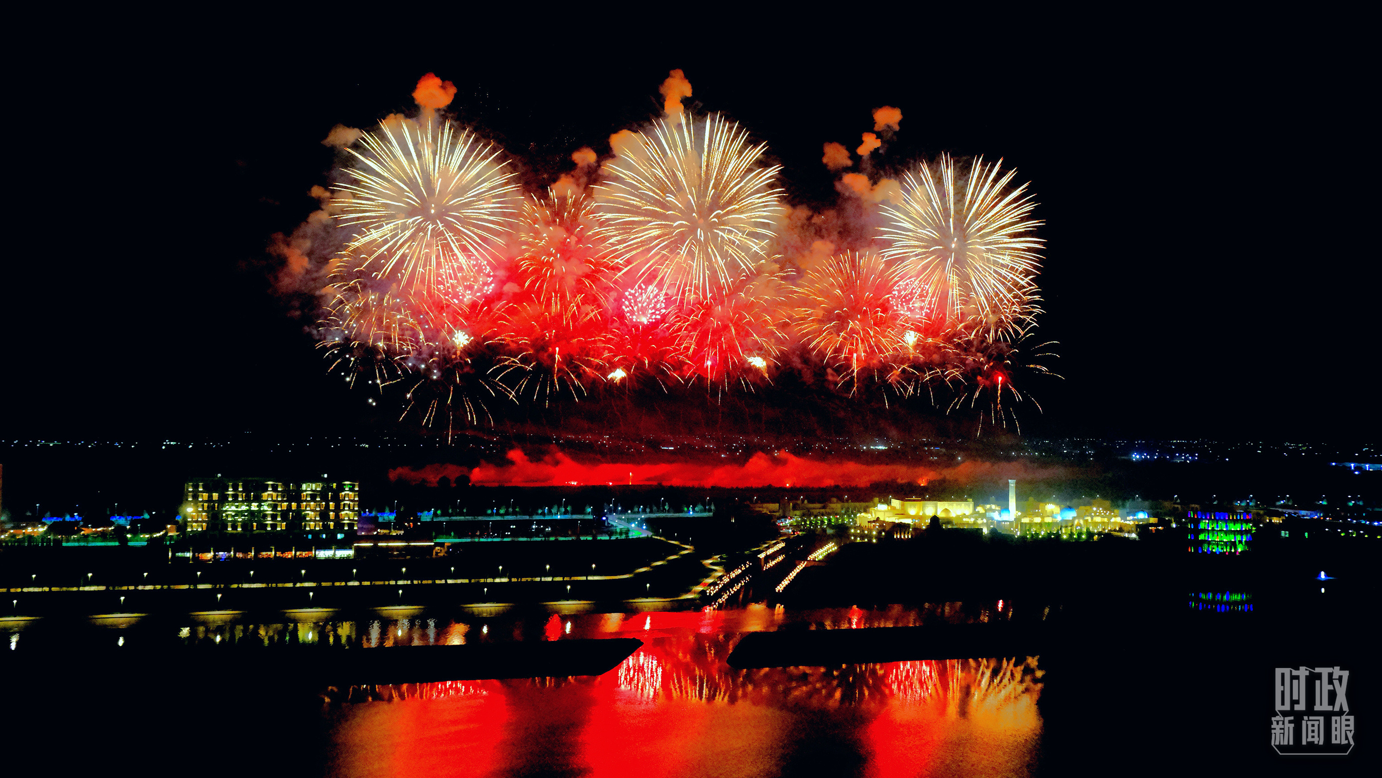 △上合峰會(huì)開(kāi)幕前夕,撒馬爾罕煙花璀璨。(總臺(tái)央視記者劉琦拍攝)