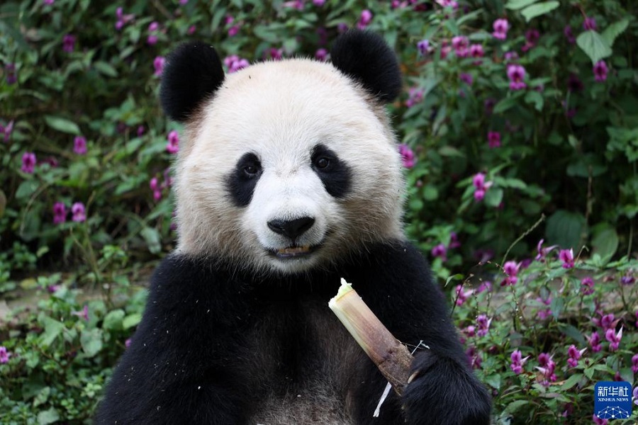 10月17日,在中國大熊貓保護(hù)研究中心雅安基地,大熊貓“四海”在吃竹子。