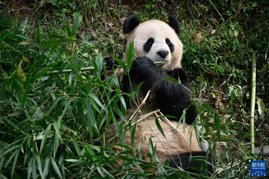 10月17日,在中國大熊貓保護(hù)研究中心雅安基地,大熊貓“京京”在吃竹子。