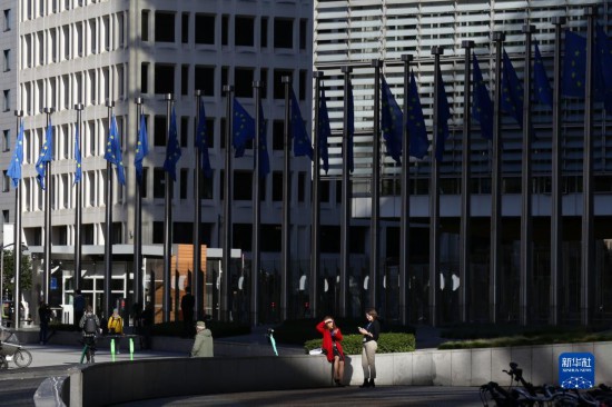 10月18日,人們?cè)谖挥诒壤麜r(shí)布魯塞爾的歐盟委員會(huì)總部大廈外交談。