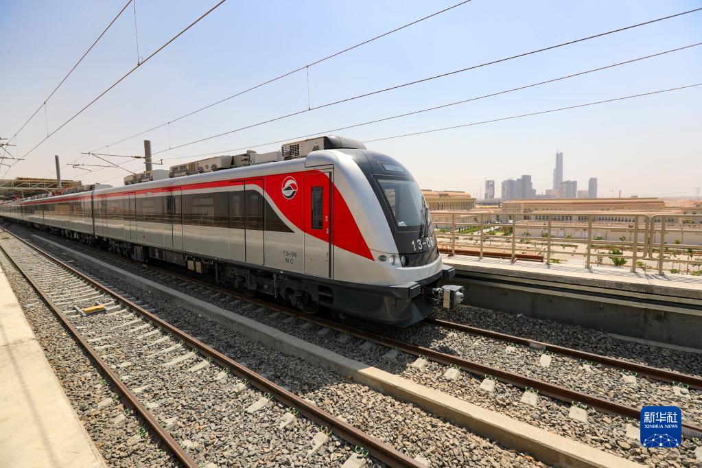 2022年7月3日,由中國企業(yè)承建的埃及齋月十日城輕軌鐵路通車試運(yùn)行。埃及齋月十日城輕軌鐵路位于埃及首都開羅東部,是連接開羅市區(qū)與新行政首都、齋月十日城和東部沿線衛(wèi)星城的重要紐帶,也是中!耙粠б宦贰焙献髌炫烅椖恐弧P氯A社記者 隋先凱攝