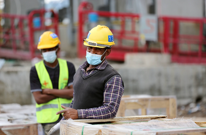 8月16日,非洲疾控中心總部大樓項目組工人在工地工作。新華社記者 汪平攝