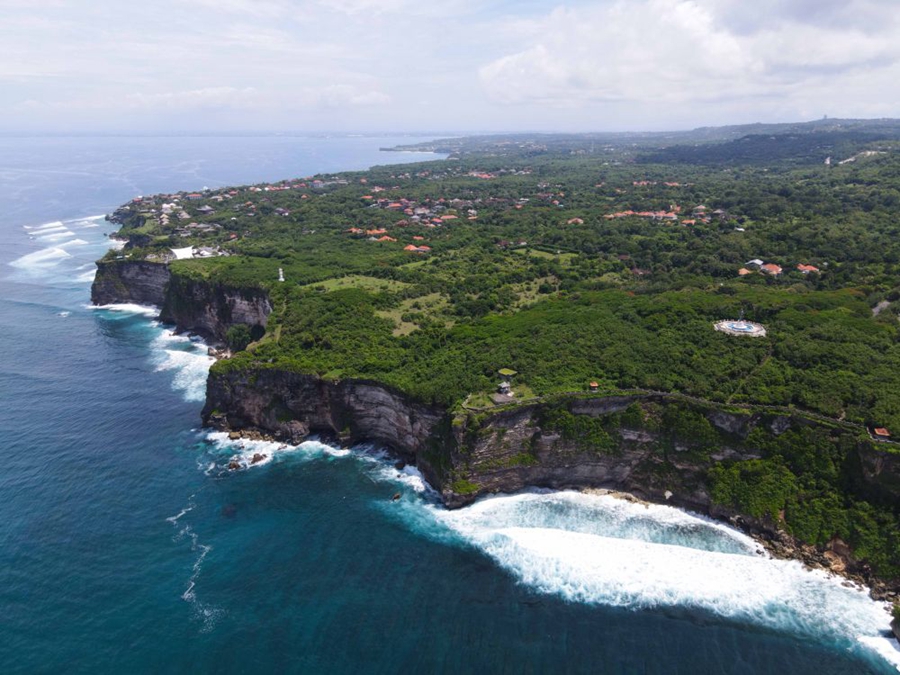 這是2021年12月22日拍攝的印度尼西亞巴厘島情人崖(無人機(jī)照片)。新華社記者 徐欽 攝