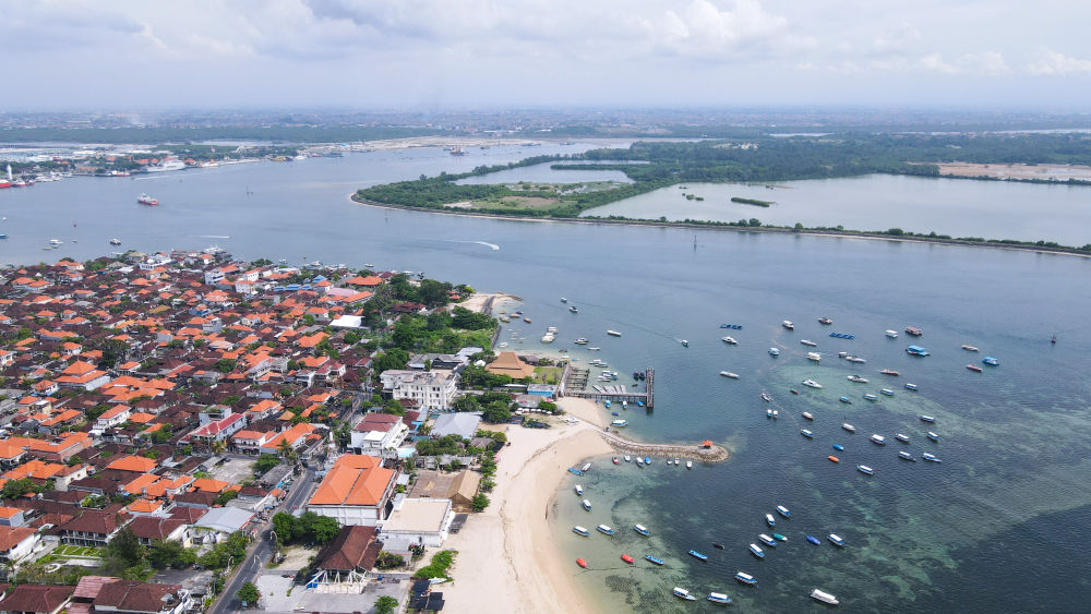 這是2022年11月12日拍攝的印度尼西亞巴厘島丹戎伯諾阿海灘及附近風(fēng)景(無人機(jī)照片)。新華社記者 徐欽 攝