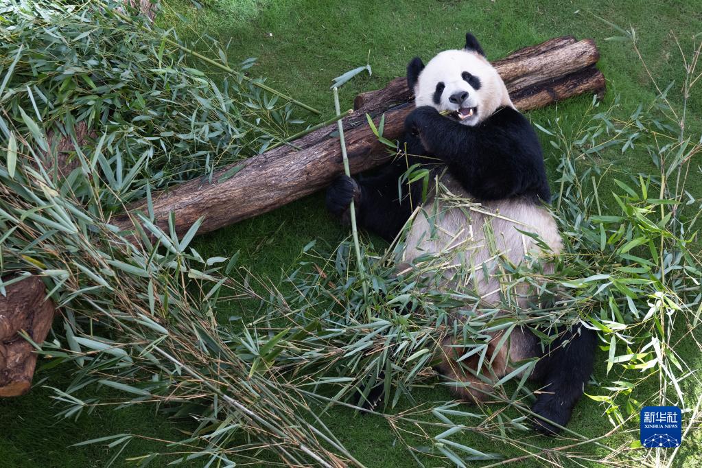 當(dāng)天在豪爾熊貓館,記者看到,兩只熊貓都有自己專屬的生活區(qū),空調(diào)恒溫,涼爽舒適,“京京”一直在吃新鮮的竹子,“四!眲t更鐘愛爬樹。