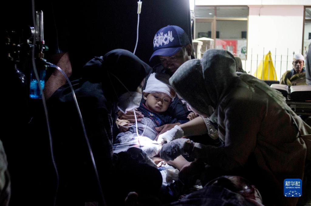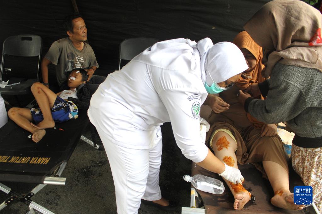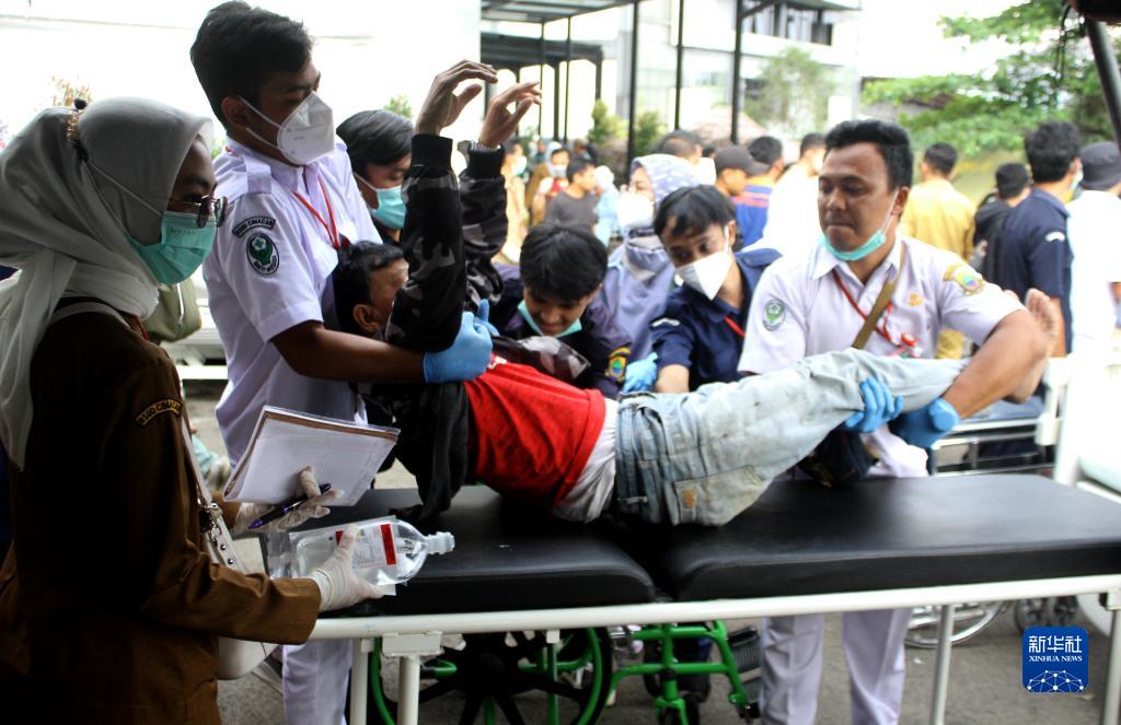 11月21日,醫(yī)務(wù)人員在印度尼西亞西爪哇省展玉救治傷者。新華社發(fā)(塞提安賈爾攝)