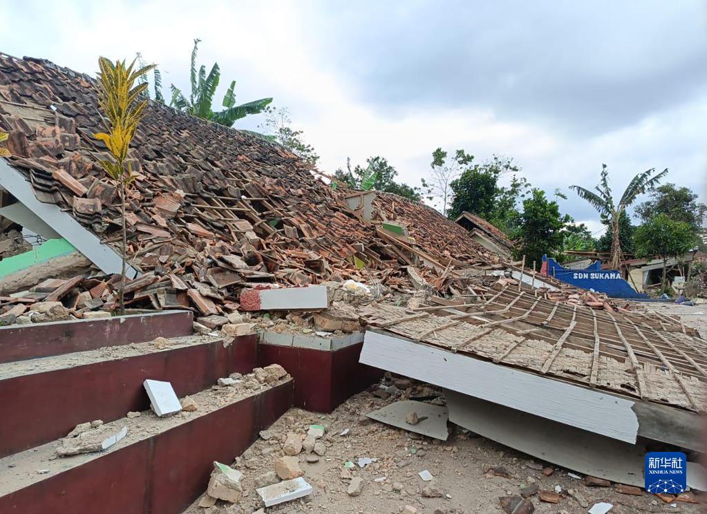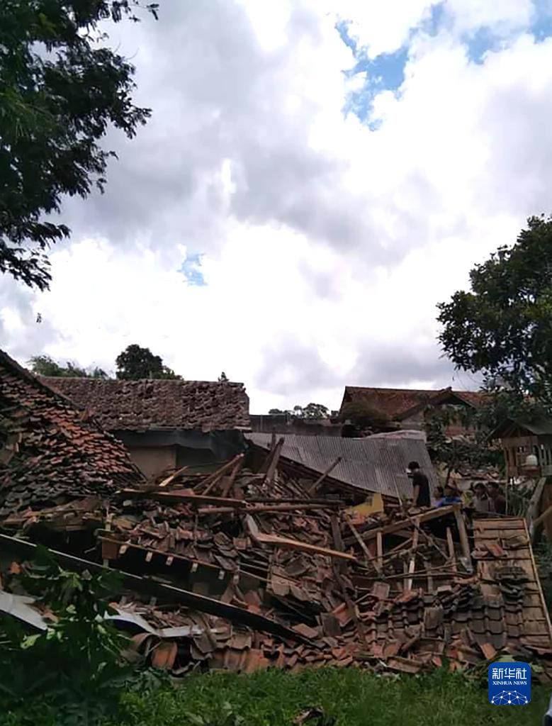這是11月21日在印度尼西亞西爪哇省展玉拍攝的被地震損毀的房屋。新華社發(fā)(印尼國(guó)家減災(zāi)署供圖)