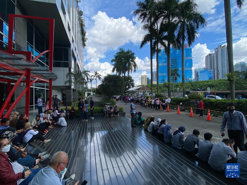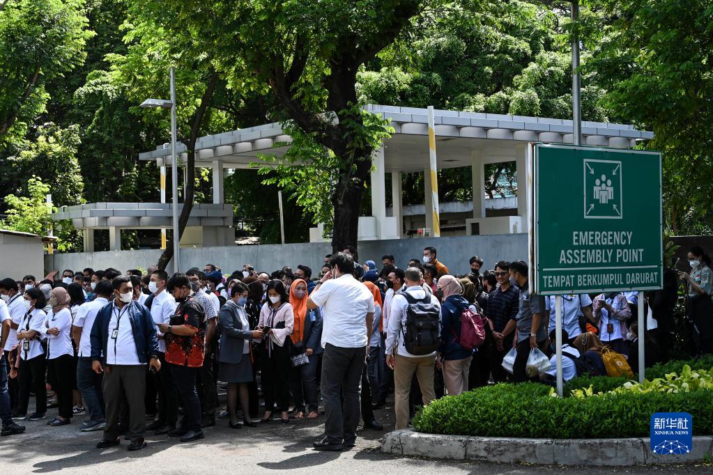 11月21日,在印度尼西亞雅加達(dá),人們?cè)趹敉忾_闊地帶避險(xiǎn)。新華社發(fā)(維里攝)