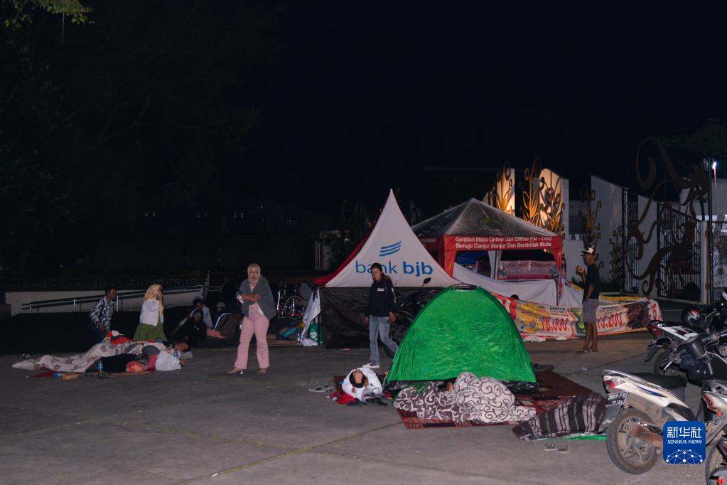 11月22日凌晨,在印度尼西亞西爪哇省展玉地區(qū),受地震影響的人們?cè)趹敉庑菹。新華社記者徐欽攝