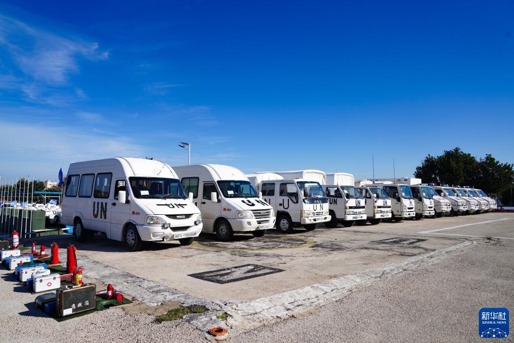 這是11月28日在黎巴嫩南部辛尼亞村的中國(guó)維和部隊(duì)營(yíng)區(qū)拍攝的待檢查車(chē)輛。