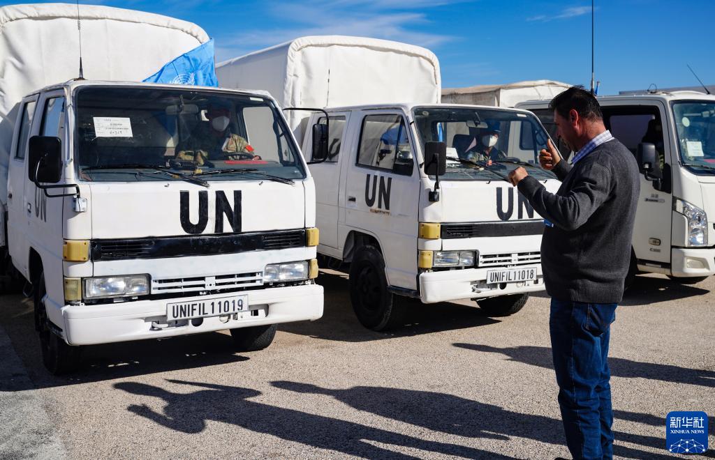 11月28日,核查官員在黎巴嫩南部辛尼亞村的中國維和部隊營區(qū)檢查車輛。