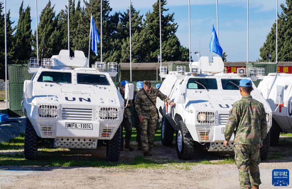 11月28日,核查官員在黎巴嫩南部辛尼亞村的中國(guó)維和部隊(duì)營(yíng)區(qū)檢查車輛。