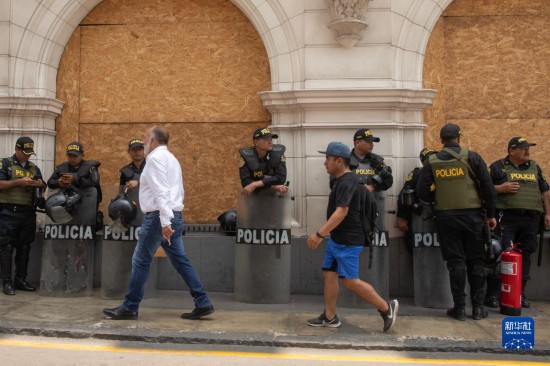 12月14日,警察在秘魯首都利馬市中心執(zhí)勤。新華社發(fā)(瑪利亞娜·巴索攝)