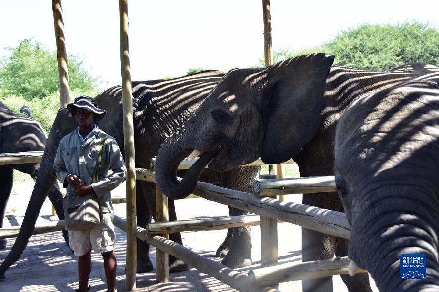 12月26日,在博茨瓦納東北部馬翁的大象孤兒院,飼養(yǎng)員照料幼象。