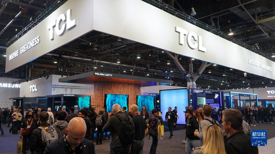 1月6日,人們在美國拉斯維加斯消費(fèi)電子展上參觀TCL展區(qū)。