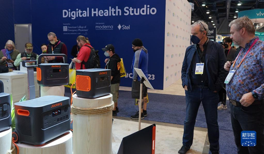 1月6日,人們在美國拉斯維加斯消費(fèi)電子展上參觀光充戶外電源品牌Jackery電小二展區(qū)。