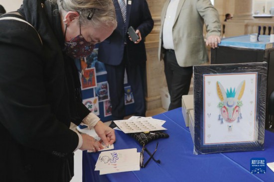 美國郵政總局12日在舊金山亞洲藝術(shù)博物館舉行中國農(nóng)歷兔年生肖紀(jì)念郵票發(fā)行儀式,慶祝即將到來的中國農(nóng)歷新年。