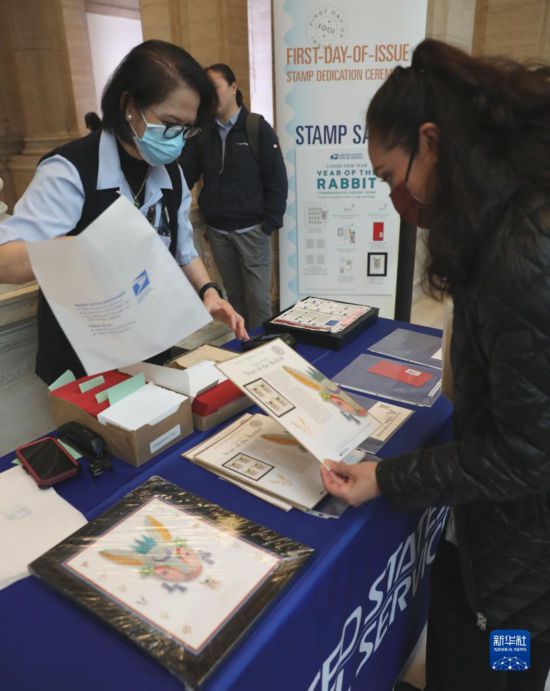 美國郵政總局12日在舊金山亞洲藝術博物館舉行中國農(nóng)歷兔年生肖紀念郵票發(fā)行儀式,慶祝即將到來的中國農(nóng)歷新年。