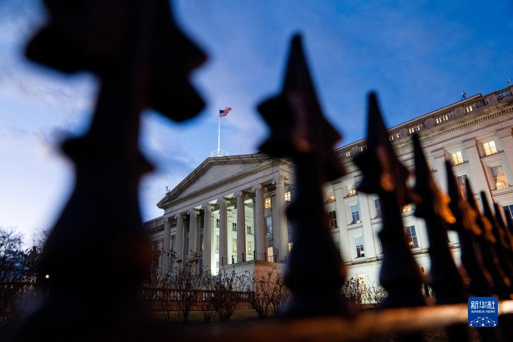這是1月20日在美國首都華盛頓拍攝的財政部大樓。新華社記者 劉杰 攝