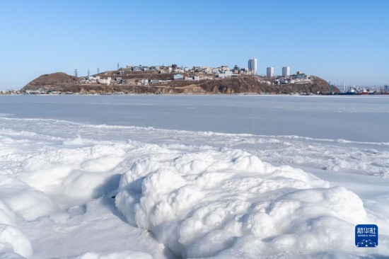 這是1月24日拍攝的俄羅斯符拉迪沃斯托克附近冰凍的海面。