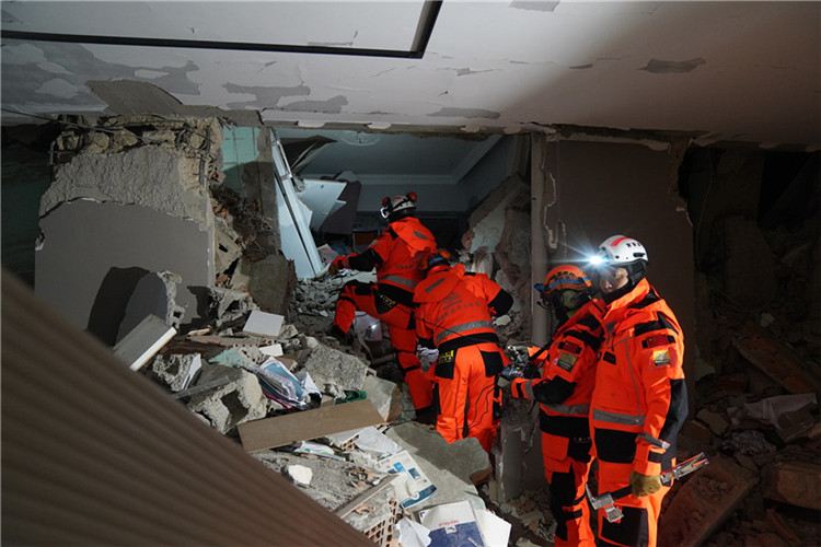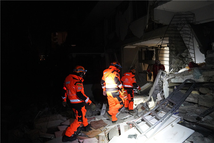 公羊救援隊在伊斯肯德倫市搜救現(xiàn)場執(zhí)行救援任務。公羊救援隊供圖