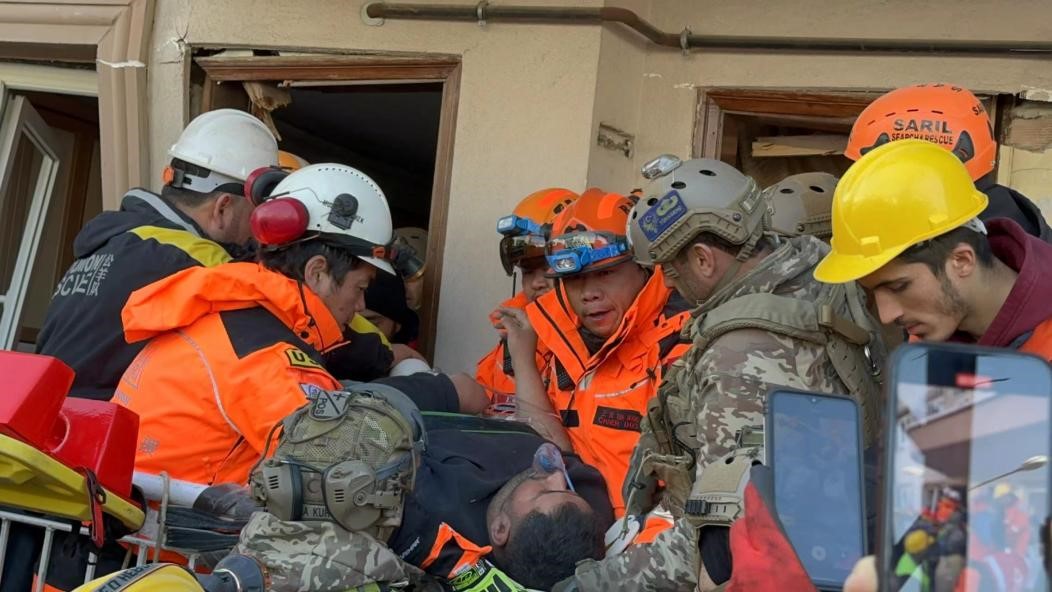 公羊救援隊(duì)聯(lián)合土耳其陸軍城搜隊(duì)在貝倫鎮(zhèn)一處民房成功救出一戶家庭。公羊救援隊(duì)供圖