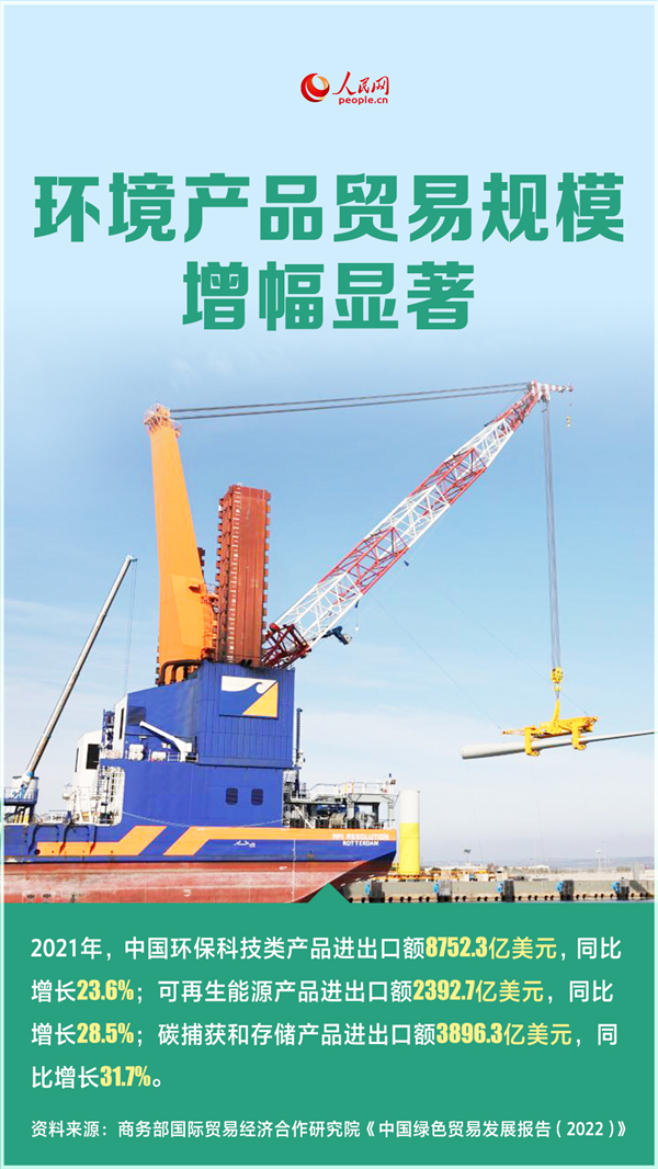 許英明認為,中國在綠色產(chǎn)業(yè)基礎(chǔ)、綠色流通體系、低碳技術(shù)、綠色發(fā)展國際合作等方面建設(shè)成效明顯;綠色貿(mào)易市場主體持續(xù)發(fā)展壯大;綠色貿(mào)易產(chǎn)品,特別是環(huán)保科技類產(chǎn)品國際競爭力不斷增強。2021年,中國是世界第一大環(huán)?萍碱惍a(chǎn)品進出口國,進出口額達8752.3億美元,同比增長23.6%,在全球占比達到17.6%。