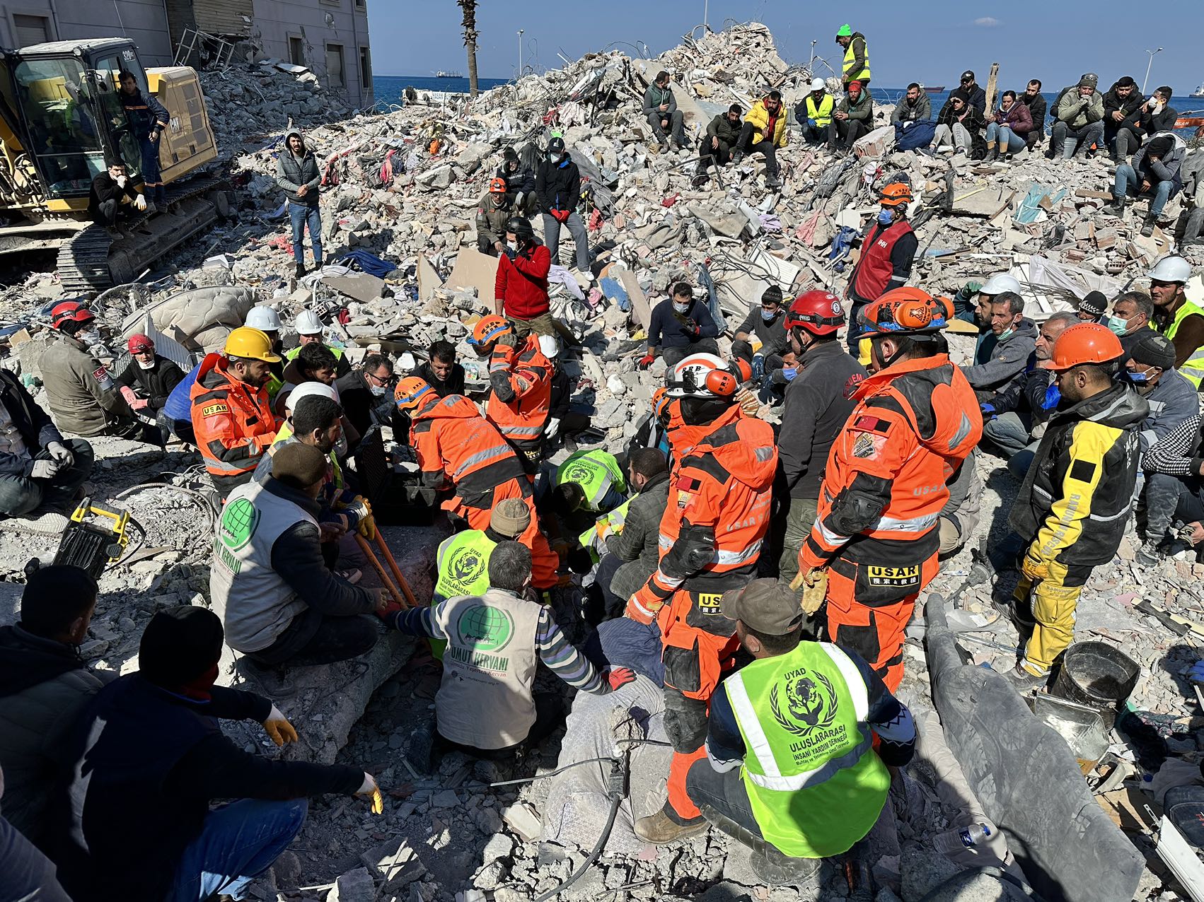 2月11日,土耳其當?shù)貢r間9時許,公羊救援隊接到來自伊斯肯德倫市的求救電話。電話反映,11日凌晨,在坍塌的廢墟中聽到有人發(fā)出聲音,救援地點就在附近。所有隊員集合!五分鐘后出發(fā)!