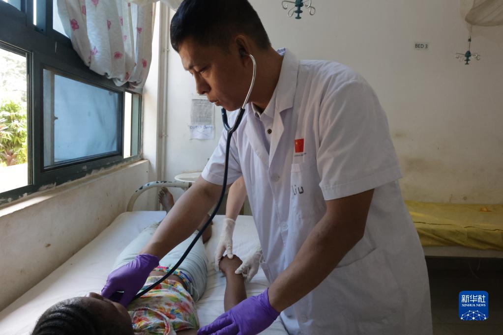 2月27日,在位于塞拉利昂首都弗里敦市郊的塞拉利昂-中國(guó)友好醫(yī)院,一名中國(guó)醫(yī)療隊(duì)醫(yī)生為患者檢查身體。