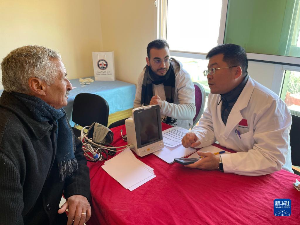 1月12日,在摩洛哥塔扎,中國援摩醫(yī)療隊的內科醫(yī)生王毅為當?shù)厝罕娏x診。